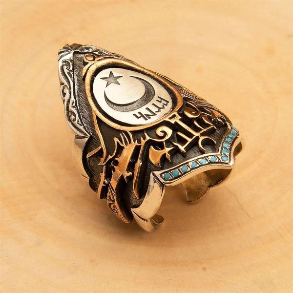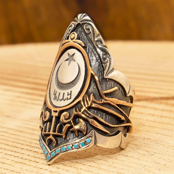 Güç ve geleneği kucaklayın, Okçuluk Yüzüğümüz ile. Bu olağanüstü parça, güç, hassasiyet ve geleneği simgeleyen eşsiz bir okçu tasarımına sahiptir. Yüzük ayrıca birlik ve mirası temsil eden hilal ve yıldız sembolünü de içermektedir; bu da onu her türlü etkinlik için dikkat çekici bir aksesuar haline getirir.
