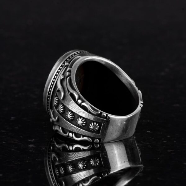 Erkek Yüzüklerimizle zarafet ve ruhsal derinliği keşfedin, 925K gümüşten özenle üretilmiştir ve çeşitli canlı yapay taşlarla mevcuttur. Her yüzük, yalnızca bir takı parçası değil, aynı zamanda inancın anlamlı bir sembolü olan karmaşık İslami motiflerle tasarlanmıştır. İster Sıcak Honey Amber’ı, ister Renksiz Taşın berraklığını tercih edin, koleksiyonumuz kişisel stilinizi zenginleştirmek için çeşitli seçenekler sunar. Bu yüzükler, günlük kullanım veya özel günler için mükemmel olup, bağlılık ve ustalığın şık bir ifadesini sağlar. Yüzük Ağırlığı: 18gr Taş Boyutu: 20-15mm