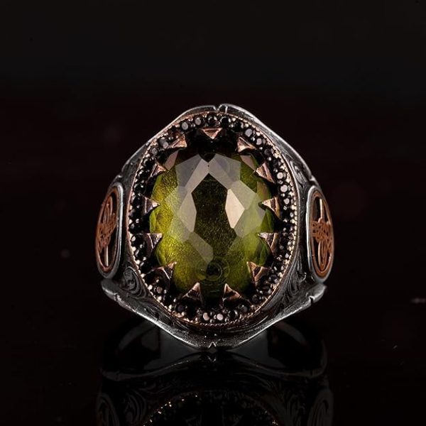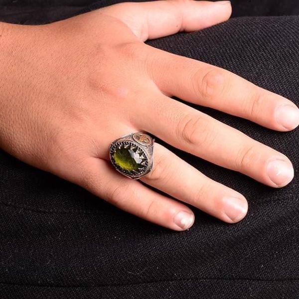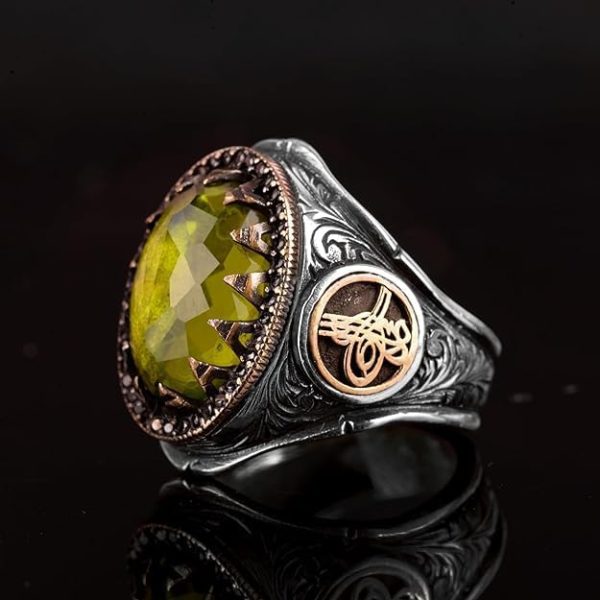 Osmanlı İmparatorluğu Yüzüğü, 925 Ayar Gümüş Yüzük, Yapay Peridot Taşlı Yüzük