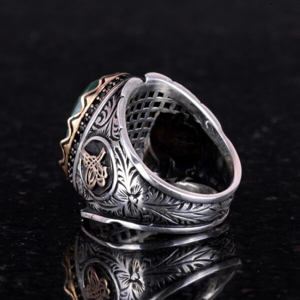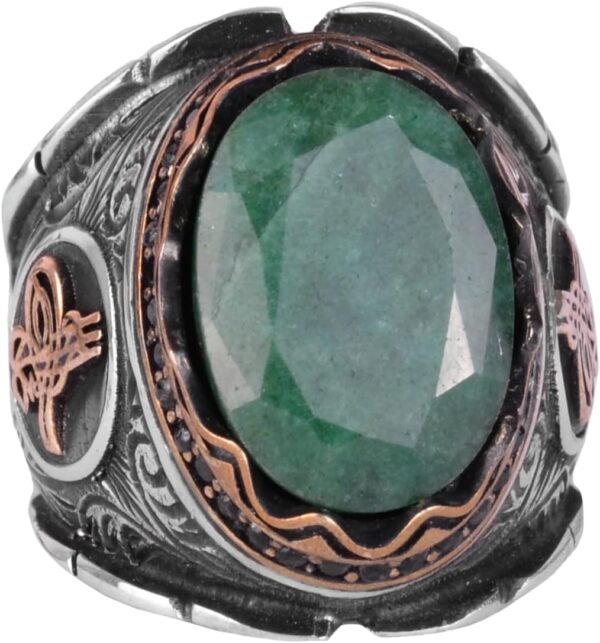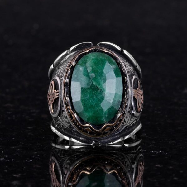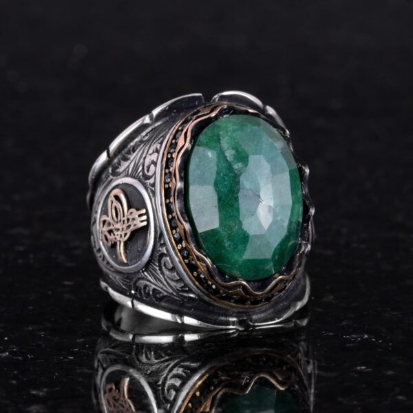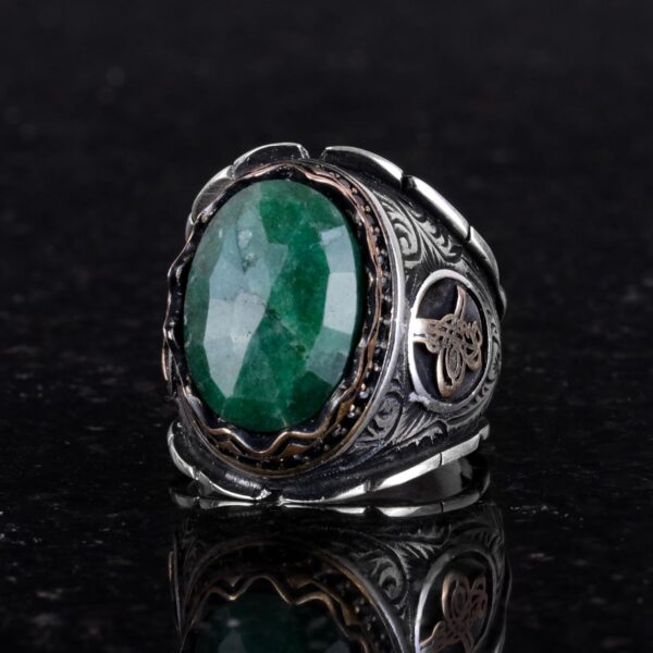 Osmanlı Tuğra Gümüş Yüzük, Doğal Taş Yüzük, 925 Ayar Gümüş Yüzük (Zümrüt)