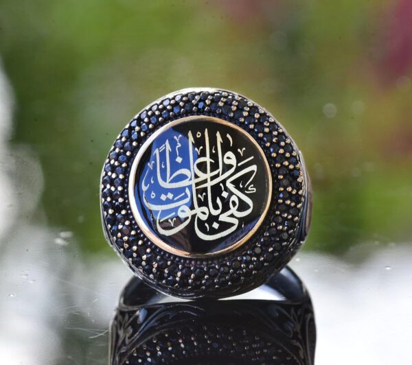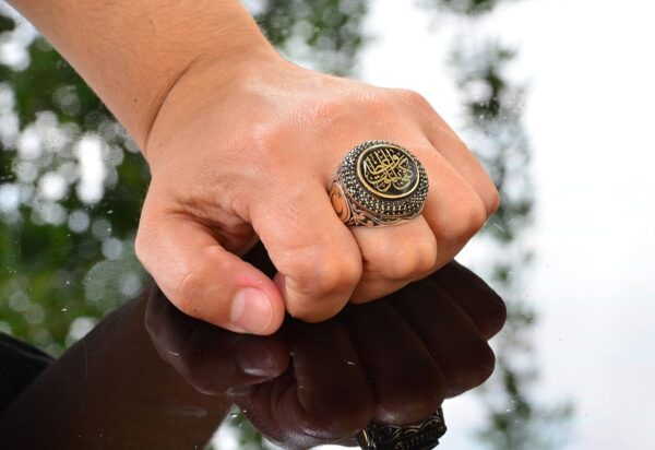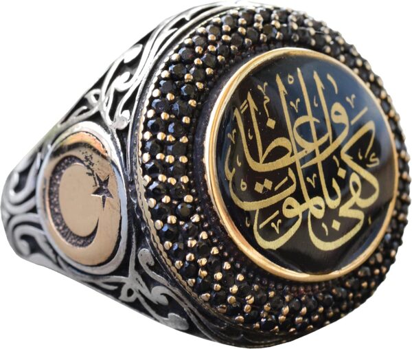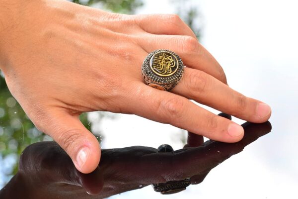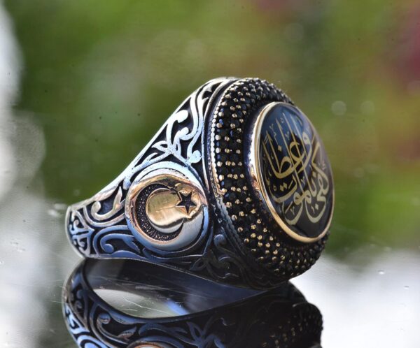 Osmanlı Tugra İslami Yüzük, 925 Ayar Katı Gümüş Yüzük, Erkekler İçin Dini Yüzük