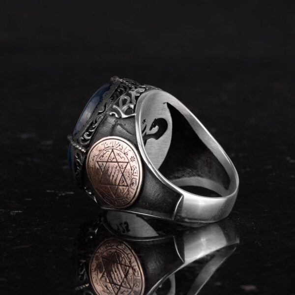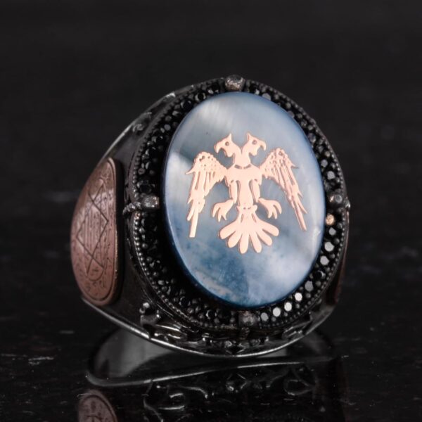 Özel Desenli Yüzük – Davut Yıldızı Yüzüğü – El Yapımı Yüzük – 925 Ayar Gümüş Erkek Yüzüğü (Çift Başlı Kartal)