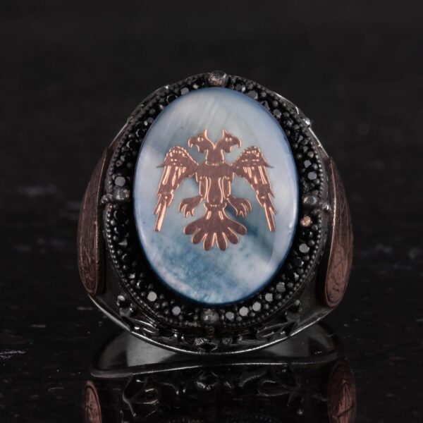 Çift başlı kartal, güç, birlik ve vizyonun sembolü olup, antik gelenekler ve kültürel miras açısından derin köklere sahiptir. Bu tasarım, güç ve bilgelik dengesini yansıtarak, bu niteliklerle özdeşleşenler için mükemmel bir temsil sunar.
