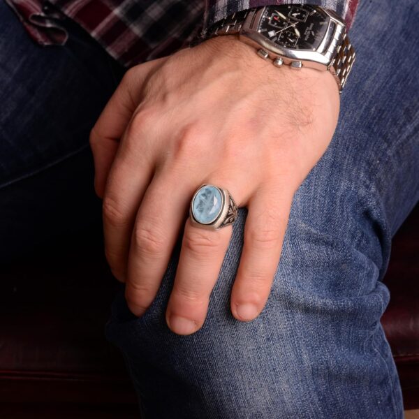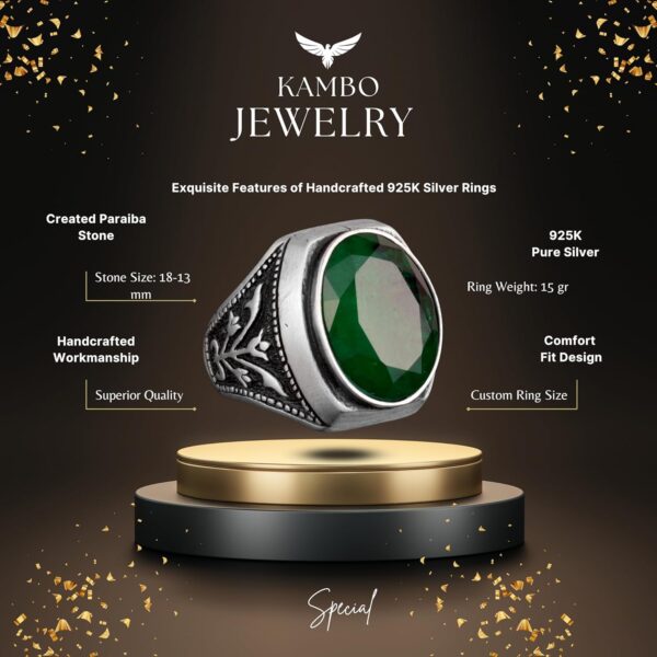Paraiba Yapay Taş Gümüş Yüzük, 925 Ayar Gümüş Erkek Yüzüğü