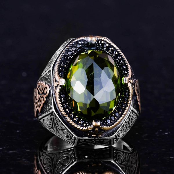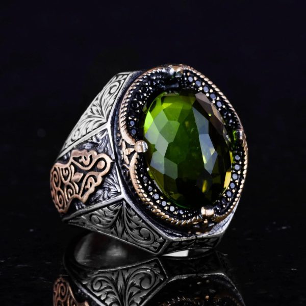 Peridot Taşlı Yüzük, 925 Ayar Gümüş Yüzük, Şık El Yapımı Gümüş Erkek Yüzüğü