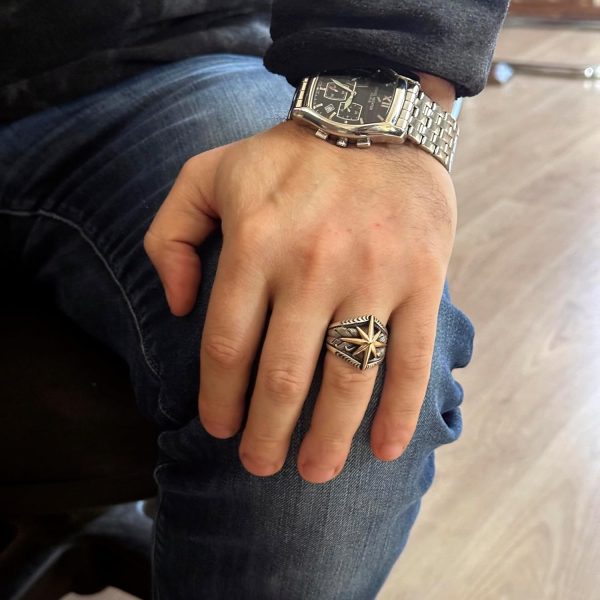 Pusula Yüzüğü – 925 Ayar Gümüş Erkek Pusula Yüzüğü