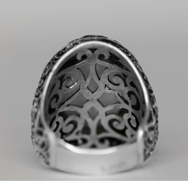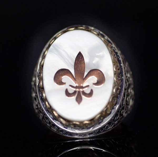 Regal ve Sembolik Erkek 925 Ayar Gümüş Yüzük – Zambak Sembolü ve Doğal Taşlarla Süslenmiş