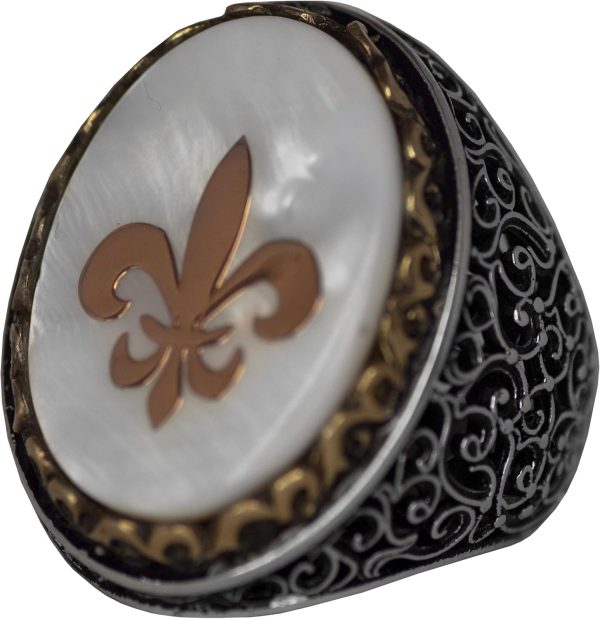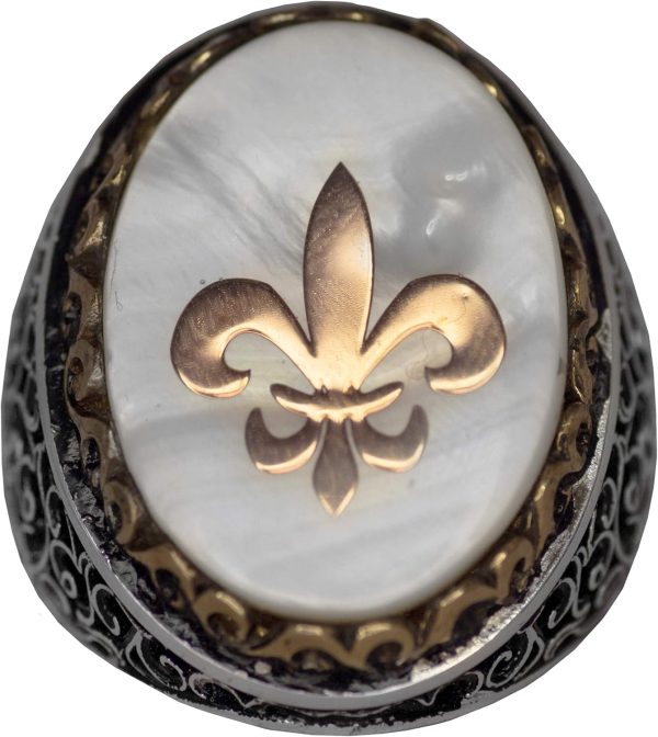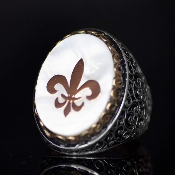 Asil & Sembolik Erkekler için 925K Gümüş Yüzük – Zambak Sembolü ve Doğal Taşlarla Süslenmiş
