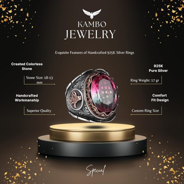Renksiz Yapay Taş Yüzük, Osmanlı Tuğrası Erkek Lüks 925 Ayar Gümüş Yüzükler – Çeşitli & Farklı Koleksiyon