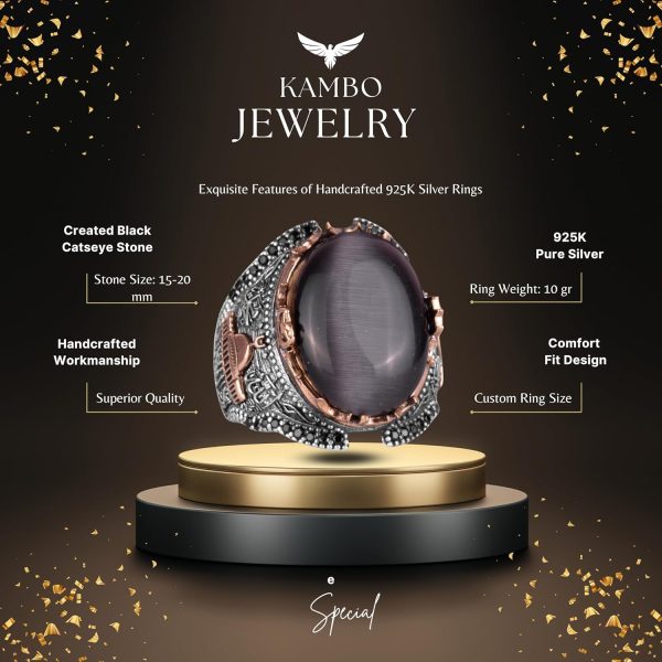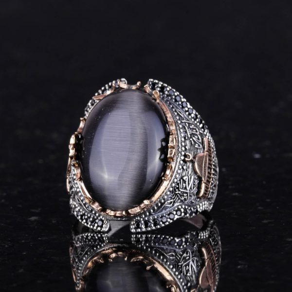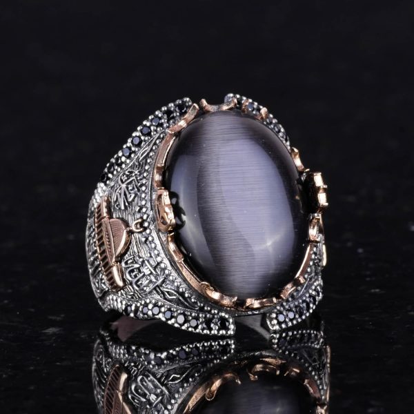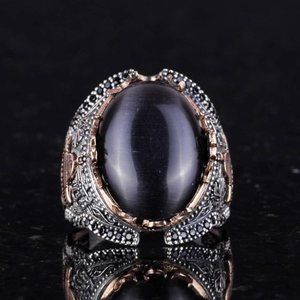 Siyah Kedi Gözlü Taş Yüzük, 925 Ayar Gümüş Taş Yüzükler – Çeşitli, Kabe Gümüş Yüzük Koleksiyonu