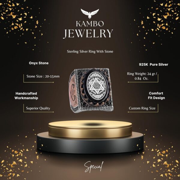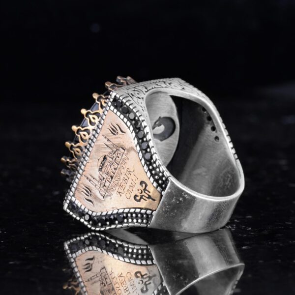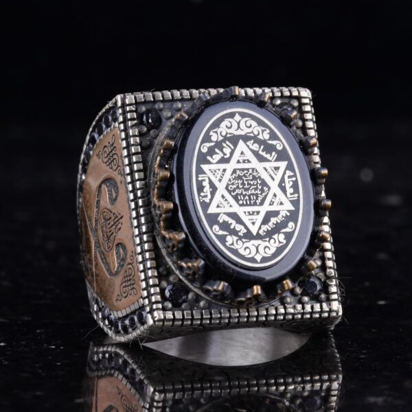 Solomon Mührü ile Gümüş Erkek Yüzük – İslami Vav Deseni ve Cami Tasarımı – El Yapımı Vintage Yüzük