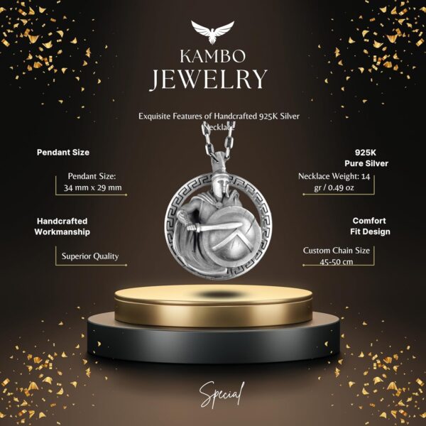 Bu benzersiz Spartalı Savaşçı Kolye ile cesur bir ifade oluşturun, premium gümüşten yapılmıştır. Karmaşık tasarımları ve savaşçı stilini takdir edenler için idealdir.