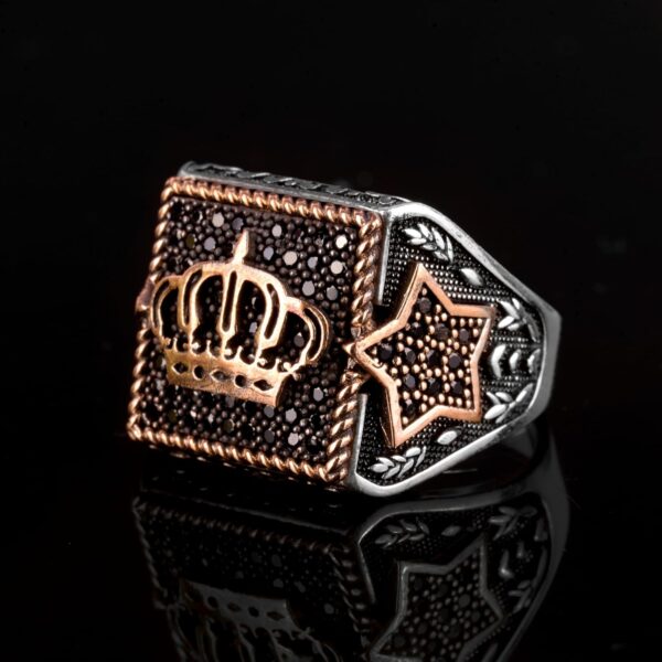 Sterling Gümüş 925 Yüzük, Erkekler İçin Lüks Yüzük, Taç Yüzük, Ayarlanabilir Erkek Yüzüğü