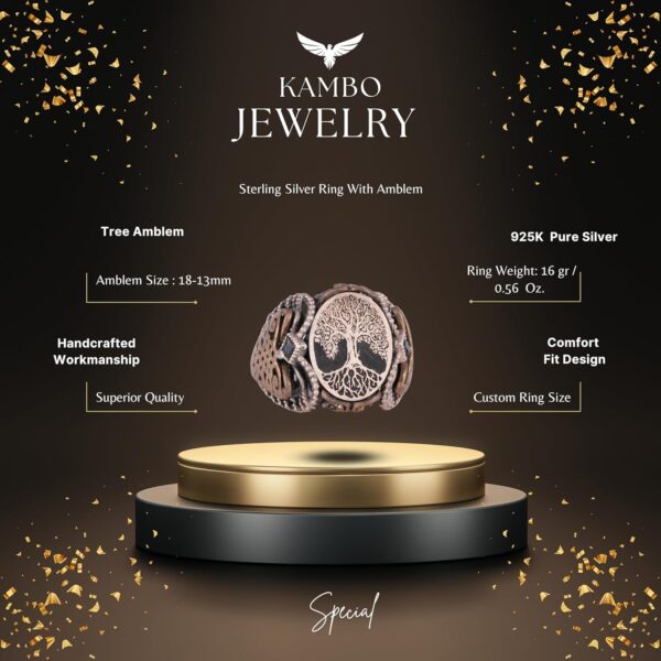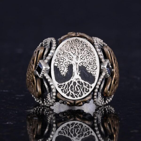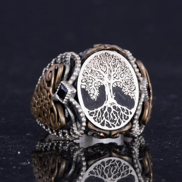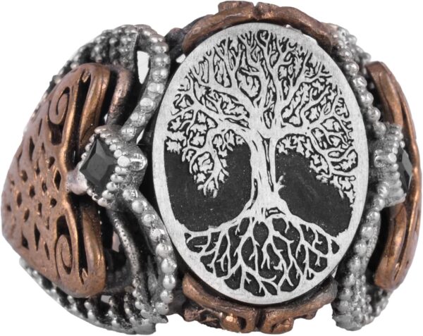 Sterling Gümüş Desenli Yüzük, Amblem – Şahane Kültürel Tasarım (Yggdrasil Hayat Ağacı)