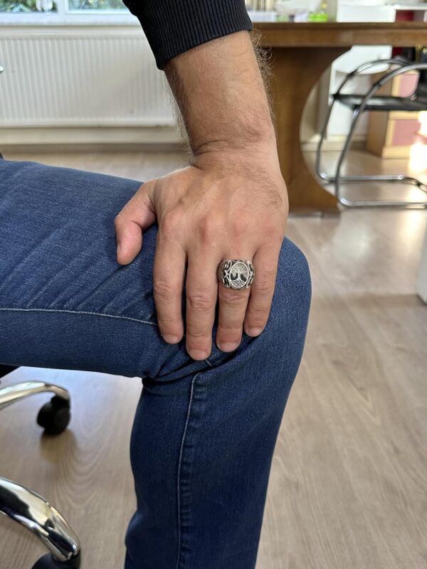 Yüksek kaliteli işçilikle üretilen bu el yapımı yüzük, dayanıklı sterling gümüşten yapılmıştır ve uzun ömürlü bir görünüm sunar. Anlamlı sembolizmi, bireyselliğini ve doğayla olan bağlantısını ifade etmek isteyenler için ideal bir seçimdir.