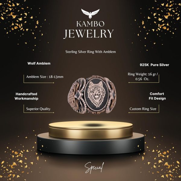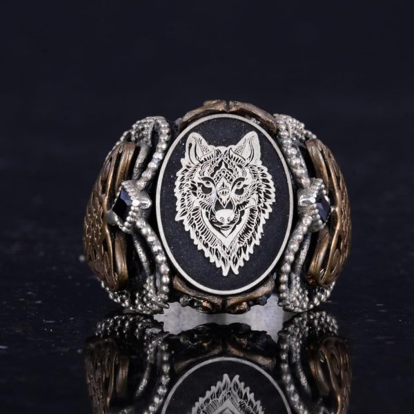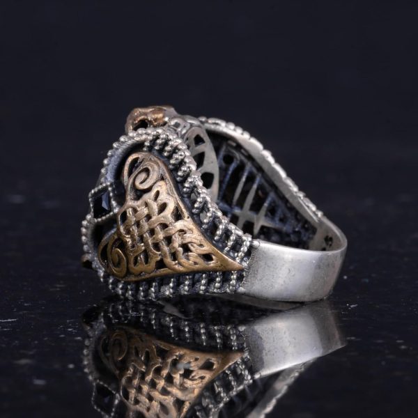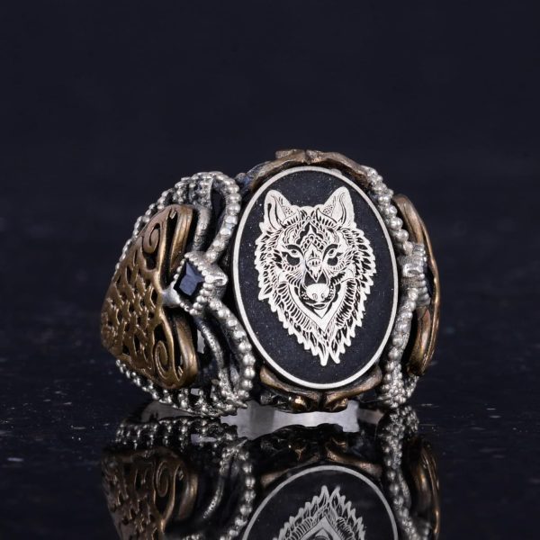 Sterling Gümüş Desenli Yüzük, Amblem – Zarif Kültürel Tasarım (Kurt Başı)