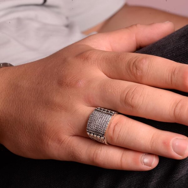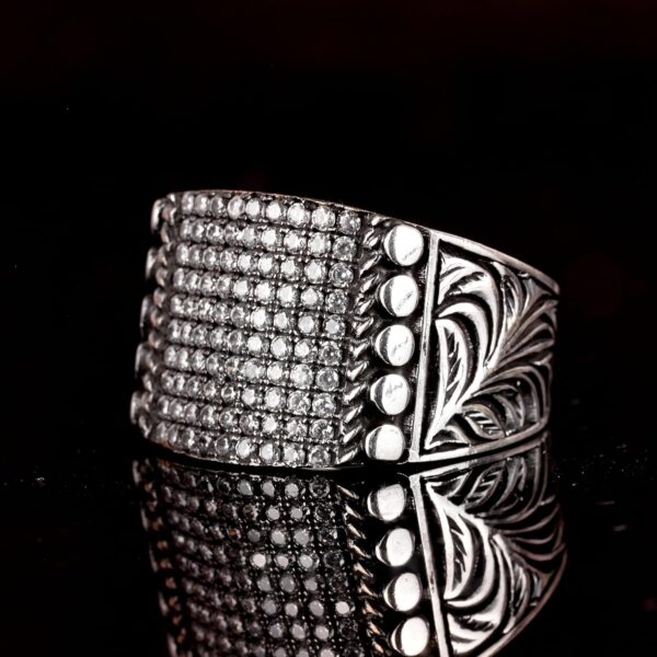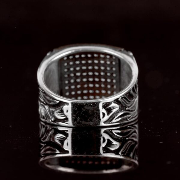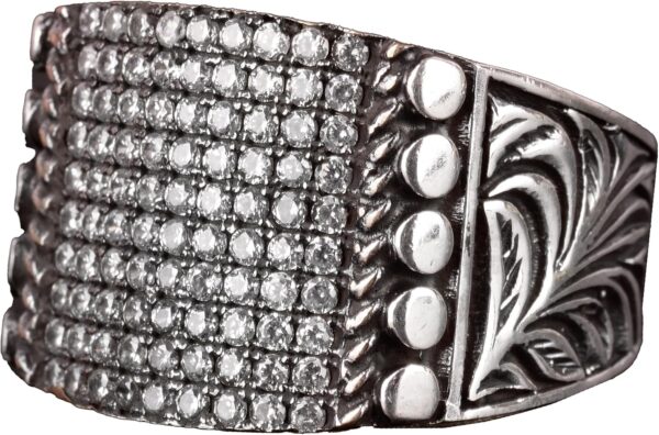 Sterling Gümüş Erkek Yüzüğü, Çelik Kalem El Sanatı, Oluşturulmuş Zirkon Taşı, Bizans İmparatorluğu Yüzüğü Ağırlık: 12.77gr