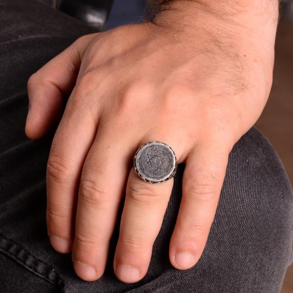 Sterling Gümüş Erkek Yüzük, Davut Yıldızı Yüzük, Sembolik Yüzük, Davut Yüzüğü