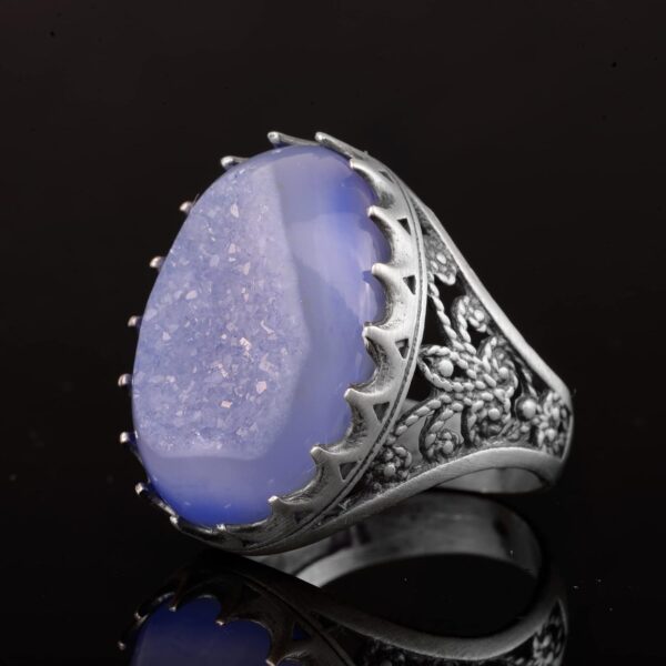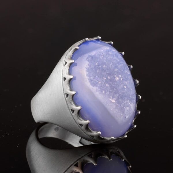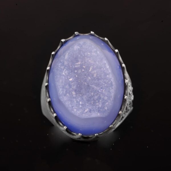 Sterling Gümüş Erkek Yüzük Drusy Kuvars Doğal Taş