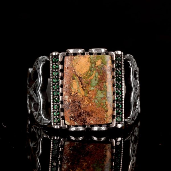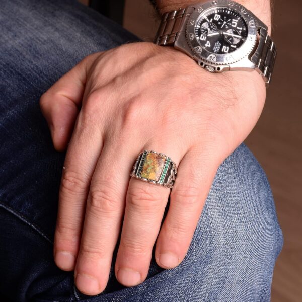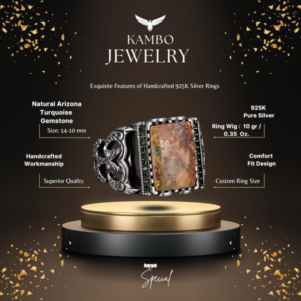 Sterling Gümüş Erkek Yüzük, Gerçek Doğal Arizona Turkuaz Taş Yüzük