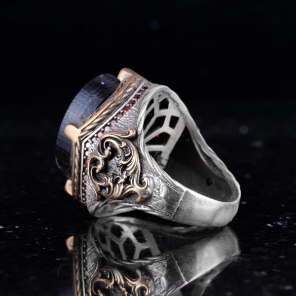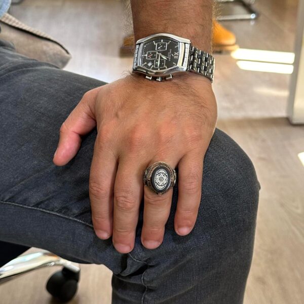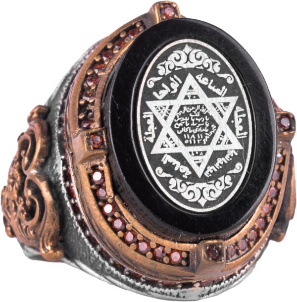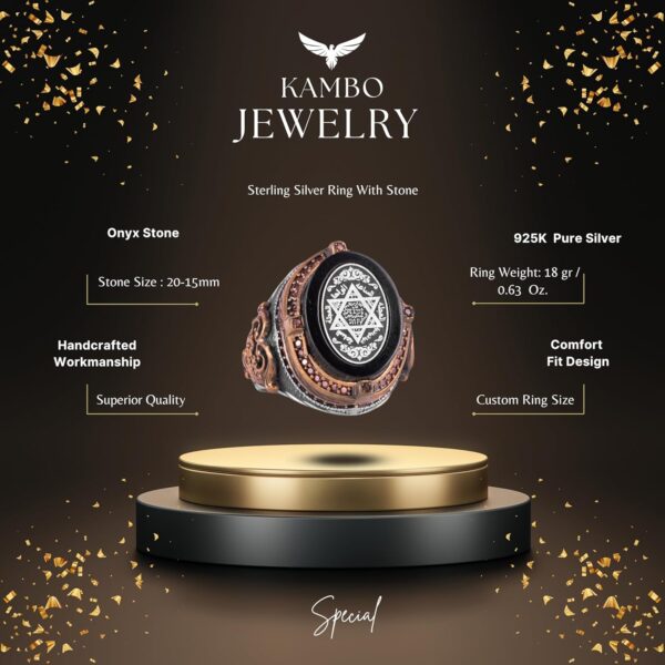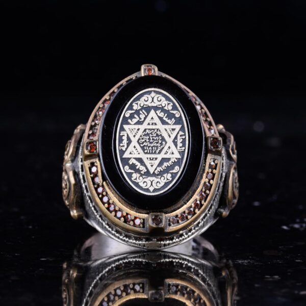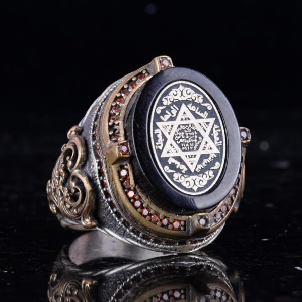 Sterling Gümüş Erkek Yüzük – Oniks Taşı – Süleyman Yıldızı Sembolü, Cesaret ve Canlılığın Sembolü – El Yapımı İfade Yüzüğü