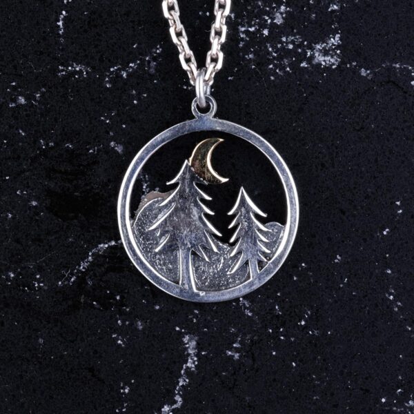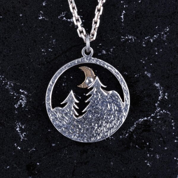925 Ayar Gümüş Ay Dedeği Tasarımlı Orman Kolye, El Yapımı Takı