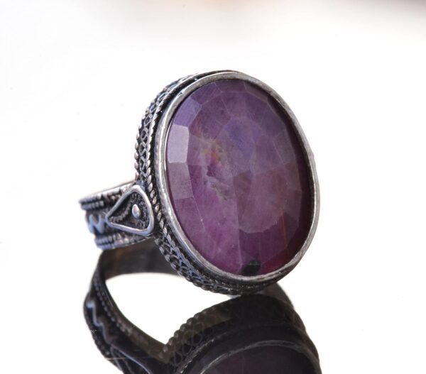 Doğal Yakut Taşı ile süslenmiş Sterling Gümüş Unisex Yüzüğümüzün zarafetini ve zamansız güzelliğini deneyimleyin.