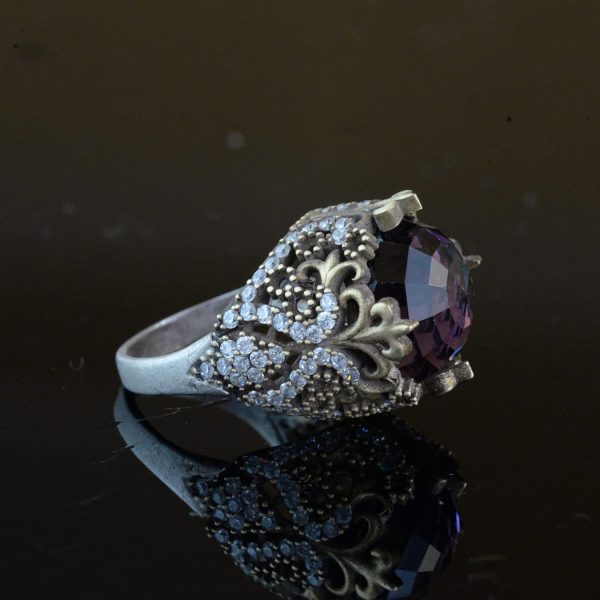 Sultan Yüzüğü, 925 Ayar Gümüş Yüzük, Osmanlı Tarzı, Yapay Taş Yüzük