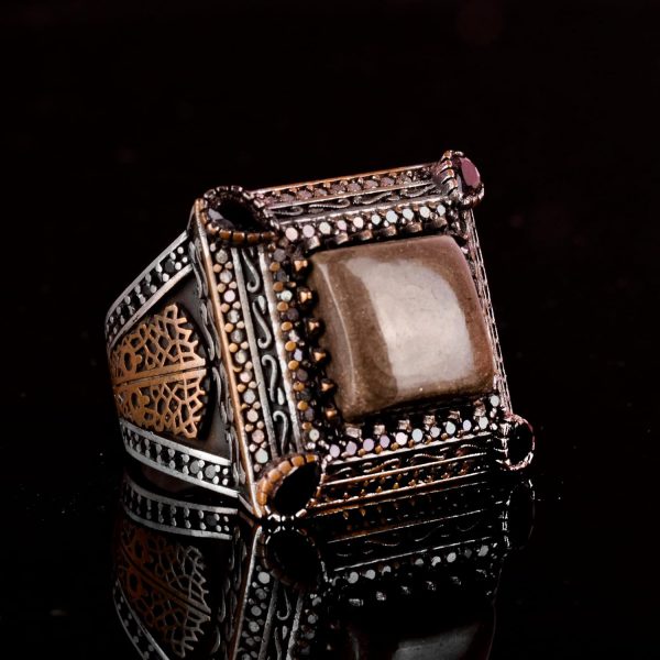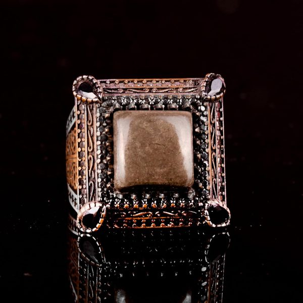 Sultan Yüzük, Gerçek Doğal Pirita Taşı Yüzük, 925 Ayar Gümüş Erkek Yüzük