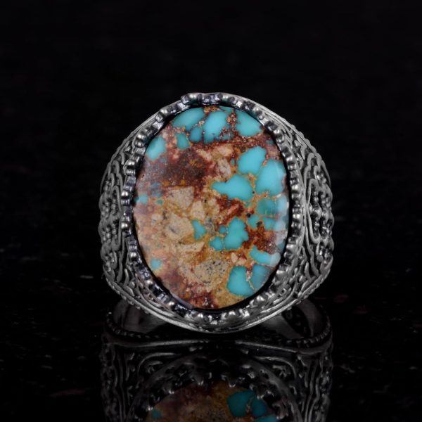 925 Ayar Gümüş Erkek Yüzük, Arizona Turkuaz Taşı, Eşsiz El Yapımı Gümüş Yüzük Ağırlığı: 10.44 gr Taş Karatı: 7.10 ct