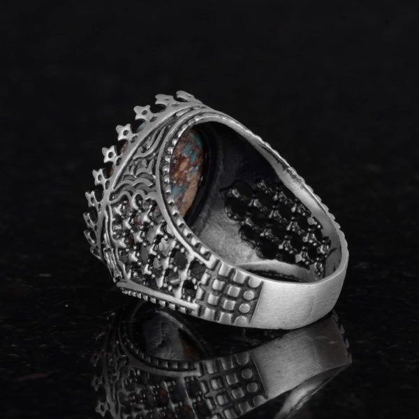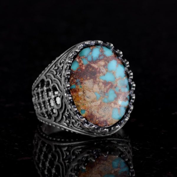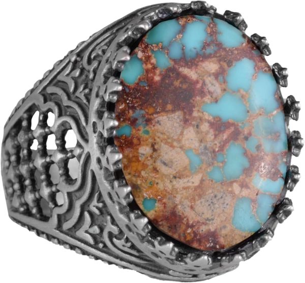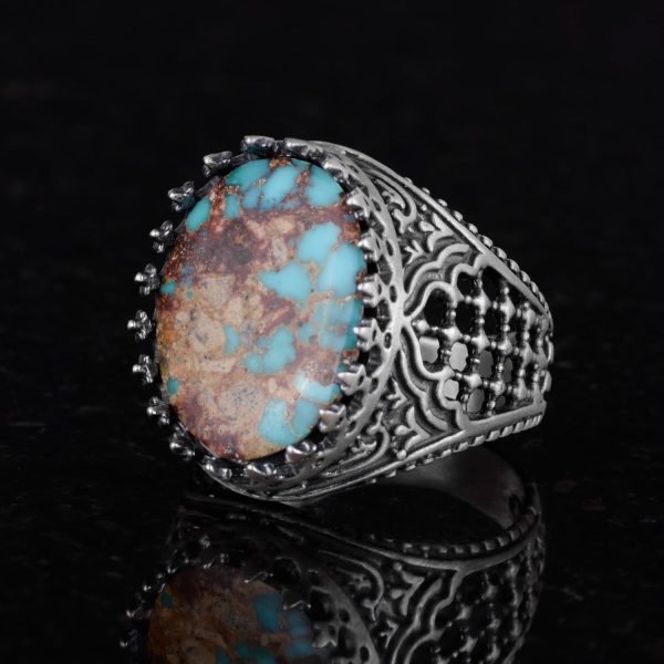 Sultan Yüzük, Gerçek Doğal Turkuaz Taş Yüzük, 925 Ayar Gümüş Yüzük Erkekler İçin