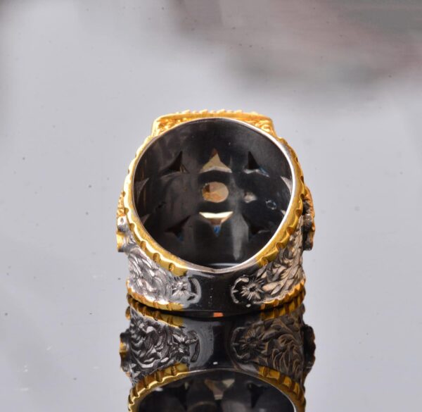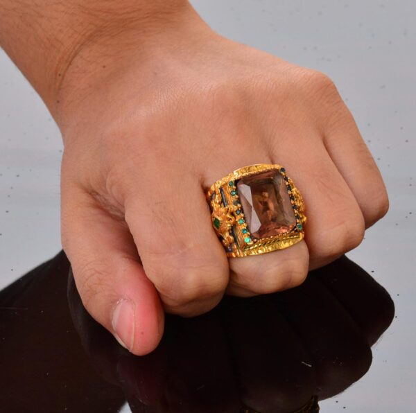 Bu el yapımı yüzük, sadece bir takı parçası değil; zanaatkarlık, güzellik ve değerli taşların mistik özelliklerinin bir sembolüdür.