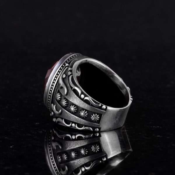 Erkek Yüzüklerimizle zarafet ve ruhsal derinliği keşfedin, 925K gümüşten ustalıkla üretilmiş ve çeşitli canlı taş seçenekleriyle sunulmaktadır. Her yüzük, sadece bir takı parçası değil, aynı zamanda inancın anlamlı bir sembolü haline getiren detaylı İslami motiflerle tasarlanmıştır. İster Bal Amberinin sıcaklığını, ister Renksiz Taşın netliğini tercih edin, koleksiyonumuz kişisel stilinizi geliştirmek için çeşitli renk paletleri sunmaktadır. Bu yüzükler, günlük kullanım veya özel günler için mükemmel bir seçimdir ve bağlılık ile ustalığın şık bir ifadesini sağlar. Yüzük Ağırlığı: 18 gr Taş Boyutu: 20-15 mm