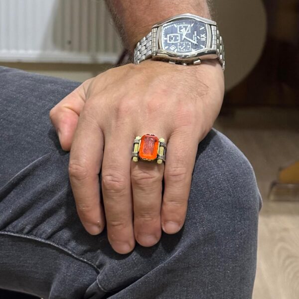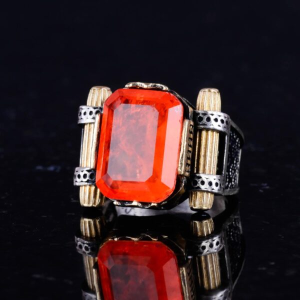 Turuncu Paraiba Yapay Taşı Yüzük – 925 Ayar Gümüş El Yapımı Yüzük