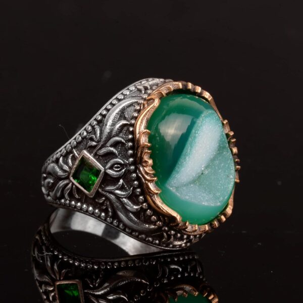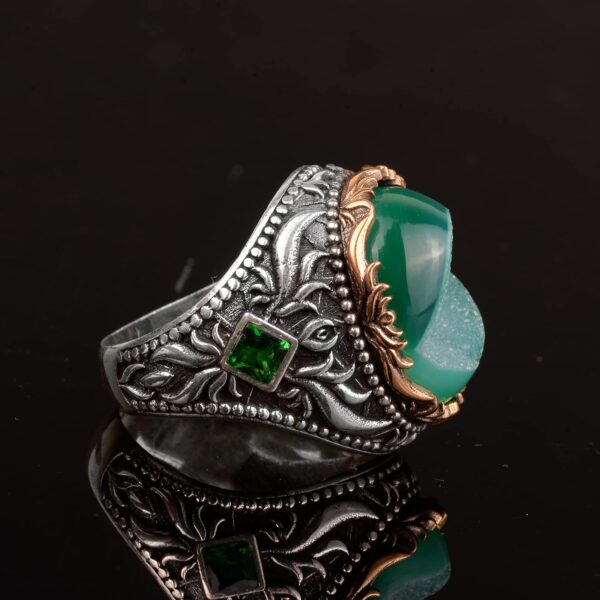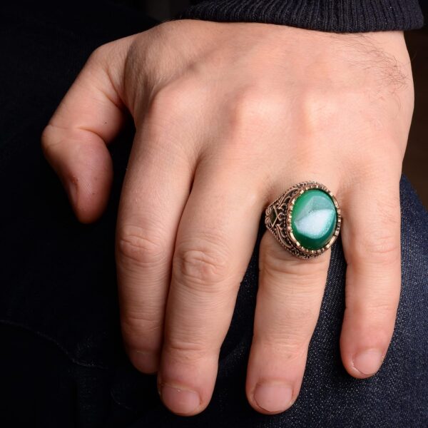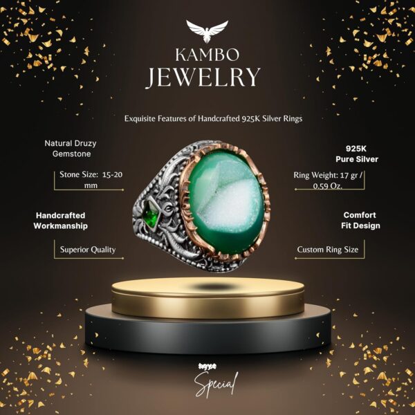 KAMBO’nun Vintage Erkek Yüzük Koleksiyonu’nun zamansız zarafetini keşfedin; bu koleksiyon, ince işçilikle yapılmış 925 ayar gümüş içine yerleştirilmiş gerçek doğal Druzy Kristal Kuvarsı içermektedir. Yeşil, Kırmızı, Lacivert, Bej ve Siyah gibi çeşitli etkileyici renklerde mevcut olan her bir yüzük, vintage stilin ve doğal güzelliğin bir kanıtıdır. Bu yüzükler, Druzy Kuvars’ın benzersiz özelliklerini vintage takıların klasik çekiciliğiyle birleştirerek fark yaratmak üzere tasarlanmıştır. Herhangi bir özel gün için mükemmel bir seçim olan KAMBO’nun yüzükleri, tarih zenginliği ve doğal değerli taşların otantikliği aracılığıyla bireyselliklerini ifade etmek isteyenler için harika bir tercihtir.