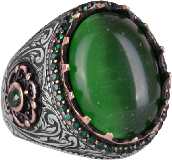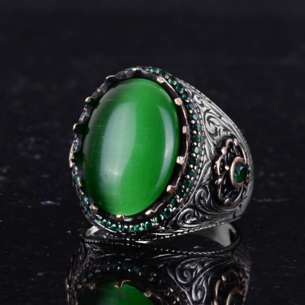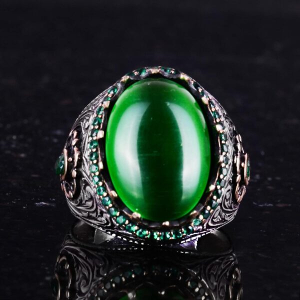 Yapay Taş Yüzük – 925 Ayar Gümüş El Yapımı Yüzük – (Yapılmış Kaplan Göz)