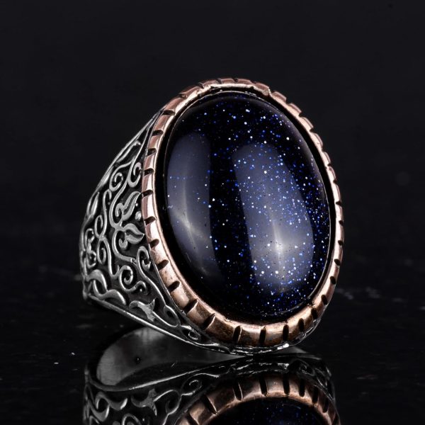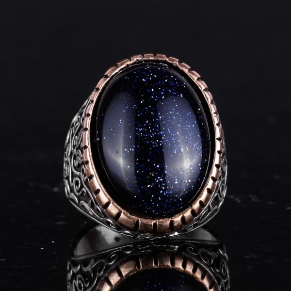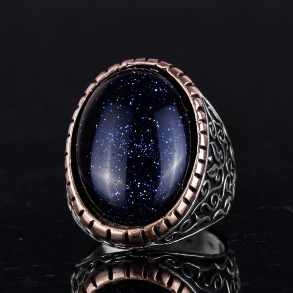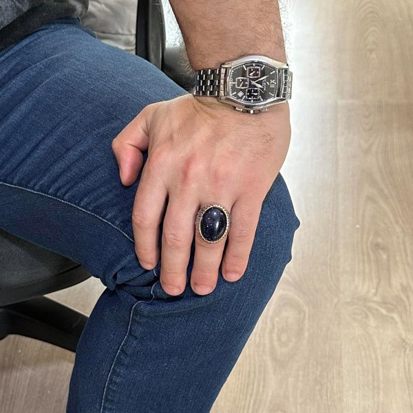 Yapay Taş Yüzük, 925 Ayar Gümüş Erkek Yüzüğü, Büyük Yüzük (Mavi Güneş Taşı Yapay Taş)