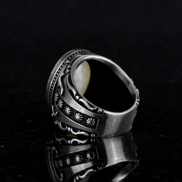 Şıklığı ve ruhsal derinliği keşfedin; 925K gümüşten zarif bir şekilde üretilmiş Erkek Yüzüklerimiz, canlı yaratılmış taşlarla sunulmaktadır. Her yüzük, sadece bir takı parçası değil, aynı zamanda inancın anlamlı bir sembolü olan karmaşık İslami motiflerle tasarlanmıştır. İster Sıcak Bal Amberinin sıcaklığını, ister Renksiz Taşın berraklığını tercih edin, koleksiyonumuz kişisel stilinizi zenginleştirecek çeşitli renk paletleri sunmaktadır. Bu yüzükler, günlük kullanım veya özel etkinlikler için mükemmeldir ve bağlılığın ve ustalığın şık bir ifadesini sağlar. Yüzük Ağırlığı: 18gr Taş Boyutu: 20-15mm