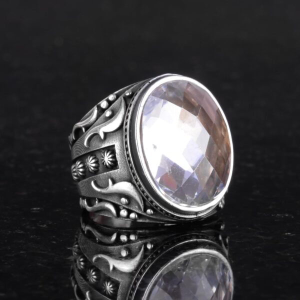 Yapay Taş Yüzük, 925 Ayar Gümüş Yüzük, Tasarım Gümüş Erkek Yüzüğü (Kristal Yapay Taş)