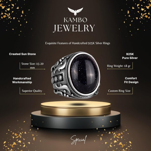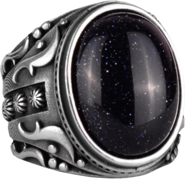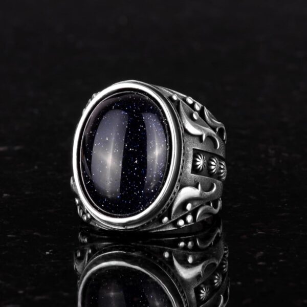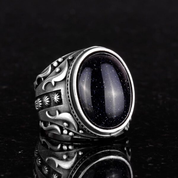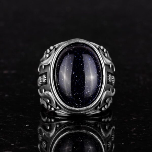 Yapay Taş Yüzük, 925 Ayar Gümüş Yüzük, Tasarım Gümüş Erkek Yüzüğü (Mavi Güneş Taşı Yapay Taş)