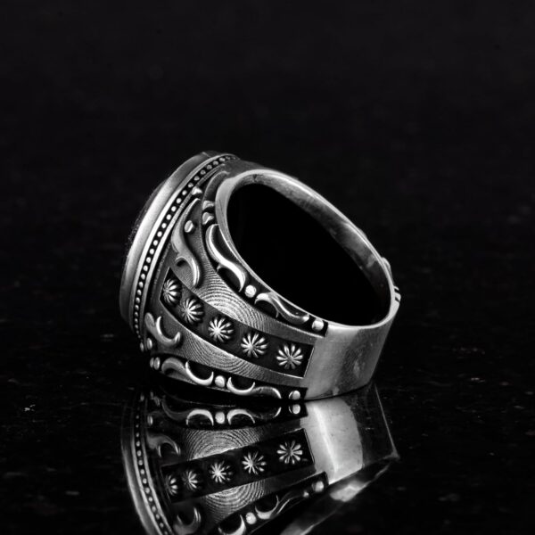 Erkek Yüzüklerimizle zarafeti ve ruhsal derinliği keşfedin; 925K ayar gümüşten özenle üretilmiş ve çeşitli canlı yaratılmış taş seçenekleriyle sunulmaktadır. Her yüzük, yalnızca bir takı parçası değil, aynı zamanda inancın anlamlı bir sembolü olan karmaşık İslami motiflerle tasarlanmıştır. İster Bal Amberi’nin sıcaklığını, ister Renksiz Taş’ın netliğini tercih edin, koleksiyonumuz kişisel stilinizi zenginleştirmek için çeşitli bir palet sunmaktadır. Bu yüzükler, günlük kullanım veya özel günler için mükemmeldir ve bağlılık ile zanaatkarlığın şık bir ifadesini sağlar. Yüzük Ağırlığı: 18gr Taş Boyutu: 20-15mm