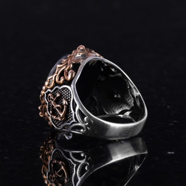 Yelkenli Çapa Yüzüğü, Yeşil Göz Taşı Yüzüğü – Canlı 925 Ayar Katı Gümüş Erkek Yüzüğü