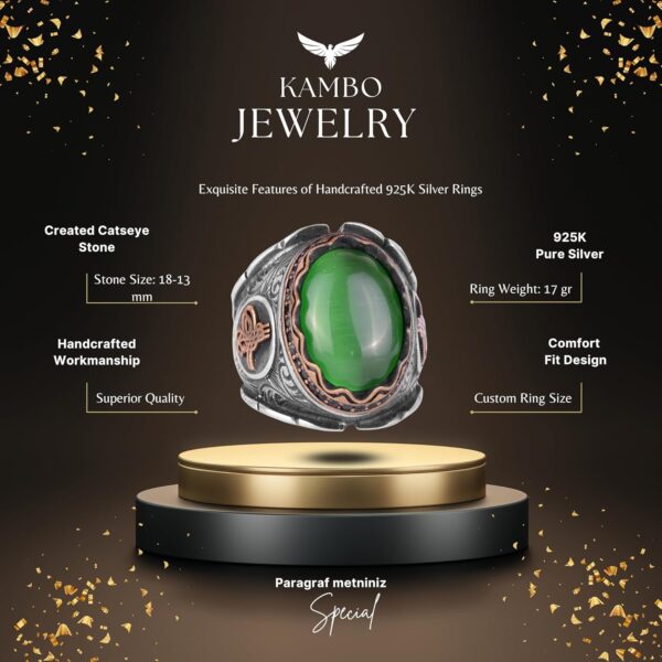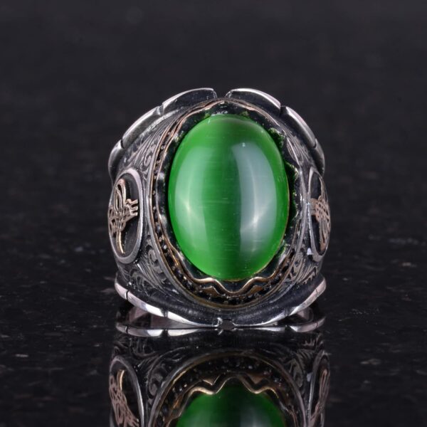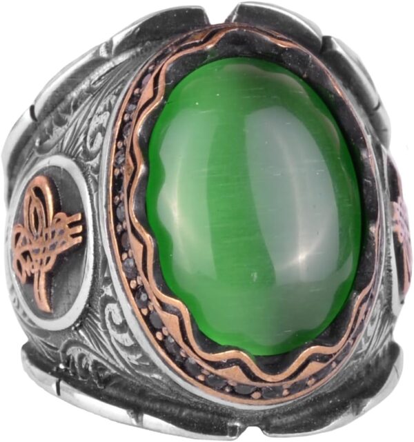 Yeşil Catseye Yapay Taş Yüzük, Osmanlı Tugra Gümüş Yüzük, 925 Ayar Gümüş Yapay Taş Yüzükler – Çeşitli ve Farklı Koleksiyon