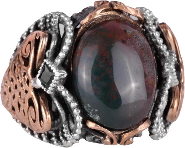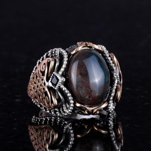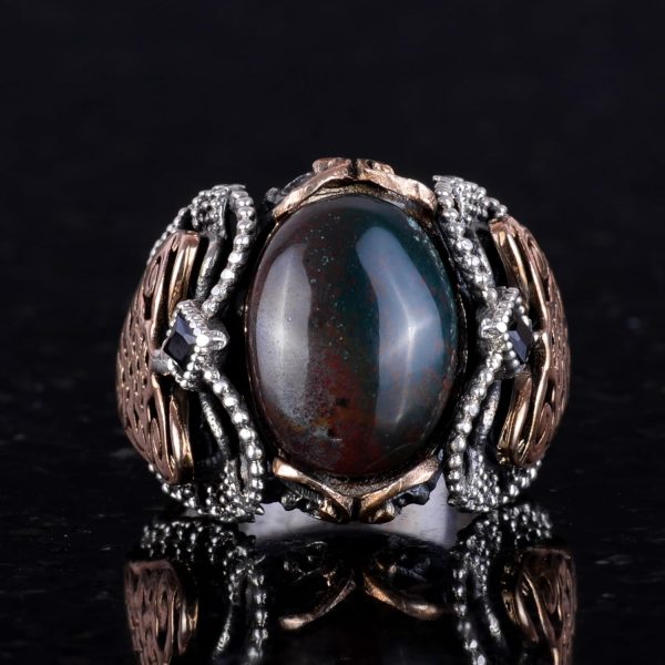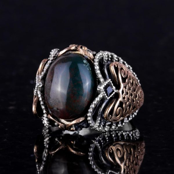 Yeşil Kan Taşı, 925K Sert Gümüş Erkek Yüzük, El Yapımı Zarafet