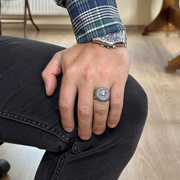 Yunan Mitolojisi Yüzüğü – Erkek 925 Ayar Gümüş Medusa Yüzüğü