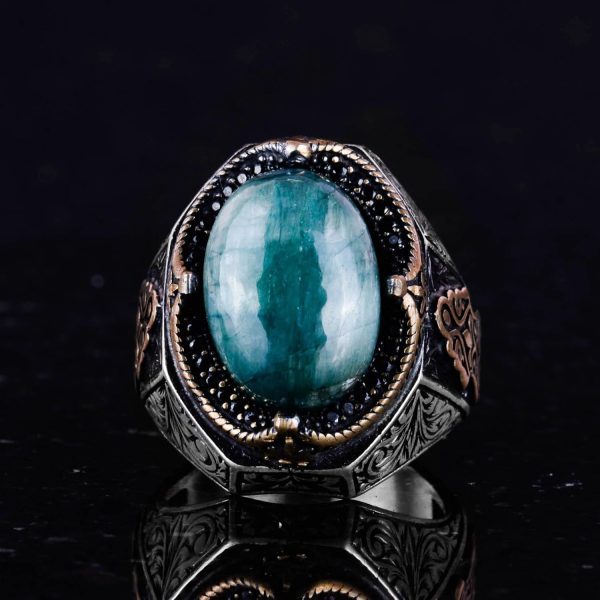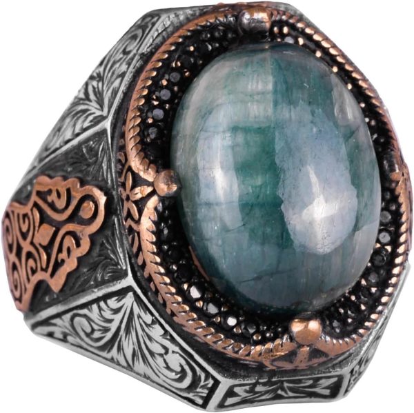 Zarif El Yapımı Cabochon Zümrüt Taşlı Yüzük, 925 Ayar Gümüş Yüzük