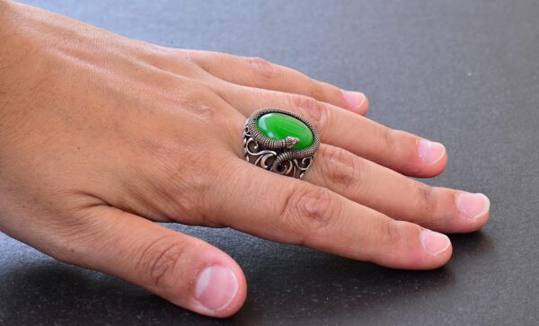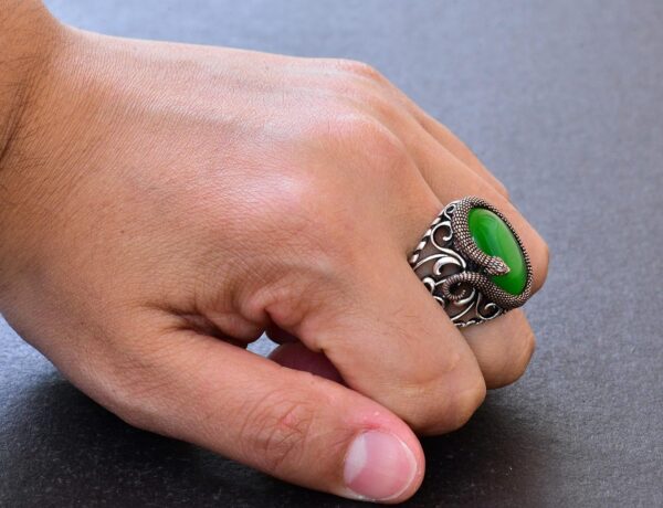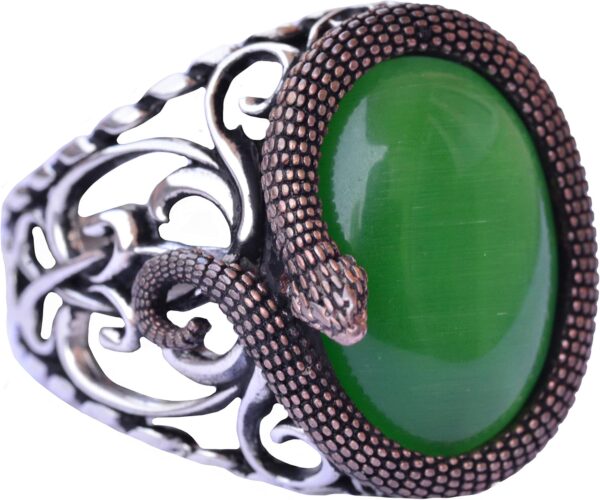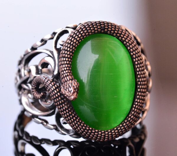 Zarif Yılan Süslemeli 925 Ayar Gümüş Erkek Taş Yüzük Koleksiyonu – Çeşitli ve Canlı (Jade Kedi Gözü Yapay Taş)